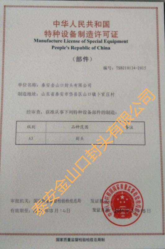 關(guān)注金山口封頭